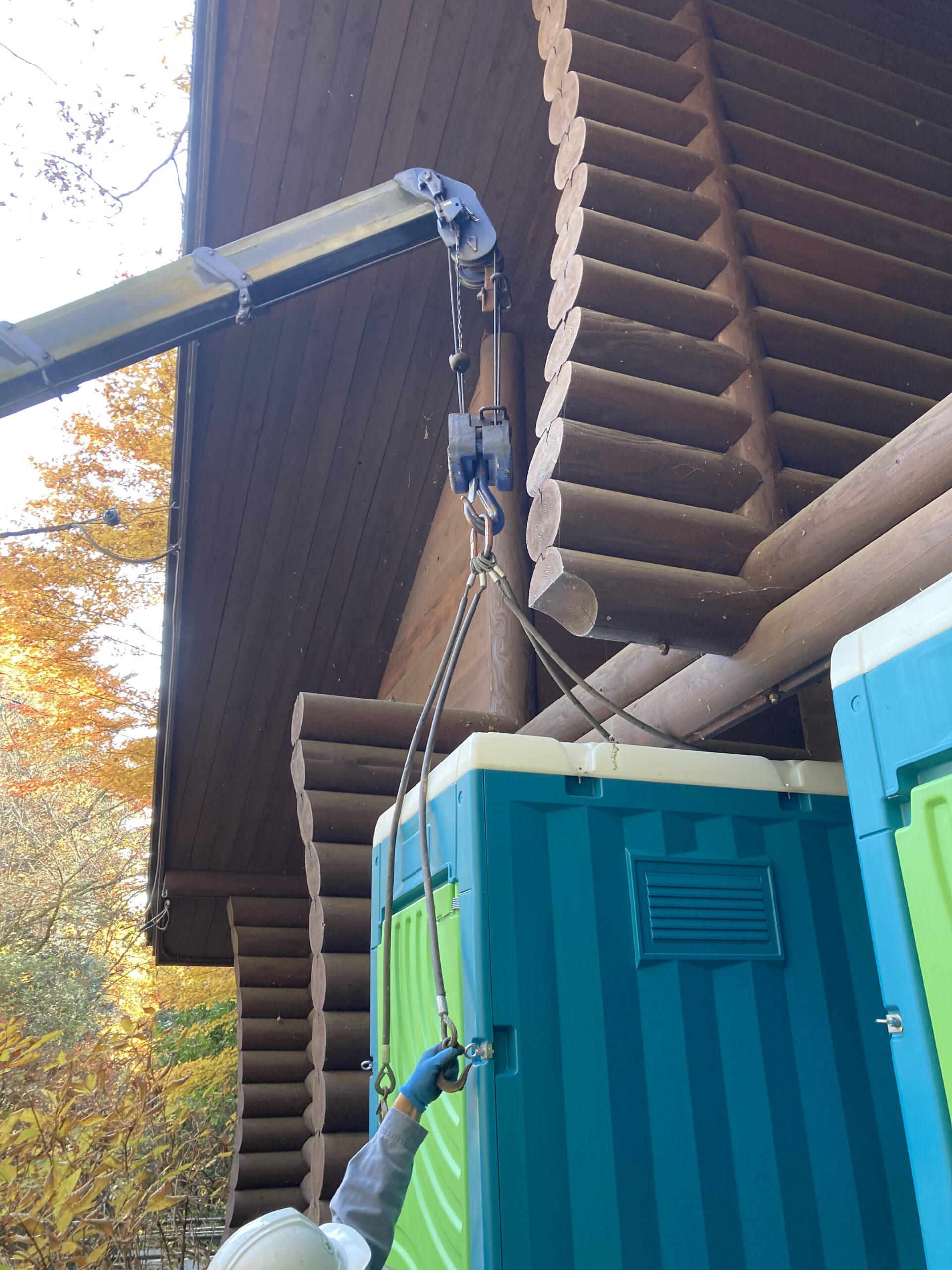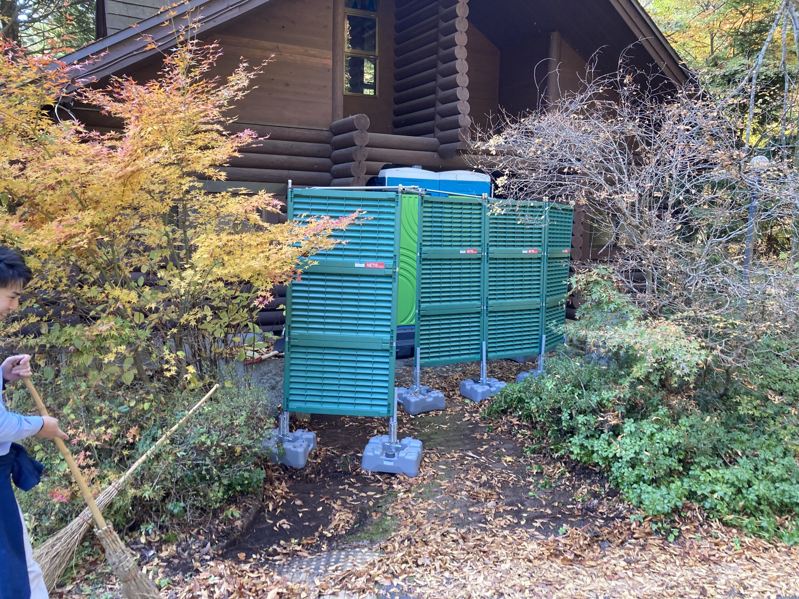 トイレの施設が故障したため、その代わりとして仮設トイレの依頼がきました。 登山客用の仮設トイレになります。ルーバーフェンスを設置し、外から見れない仕様になっております。